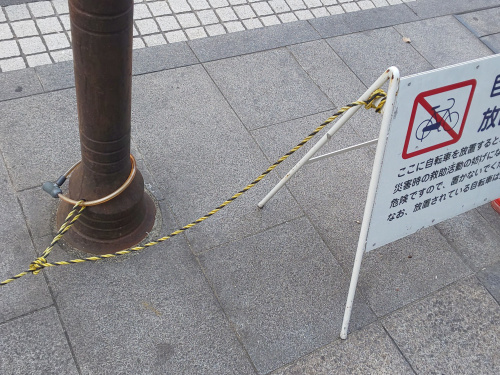 歩道には自転車を置かせないための、こんな景色がありました。