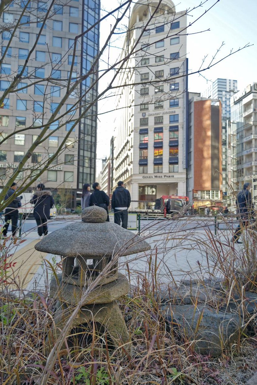 私にとっては、あの立ち並ぶ店舗が、この石灯籠に変身してしまったようなようなイメージです。または、この石灯籠があの景色を映していたのか。