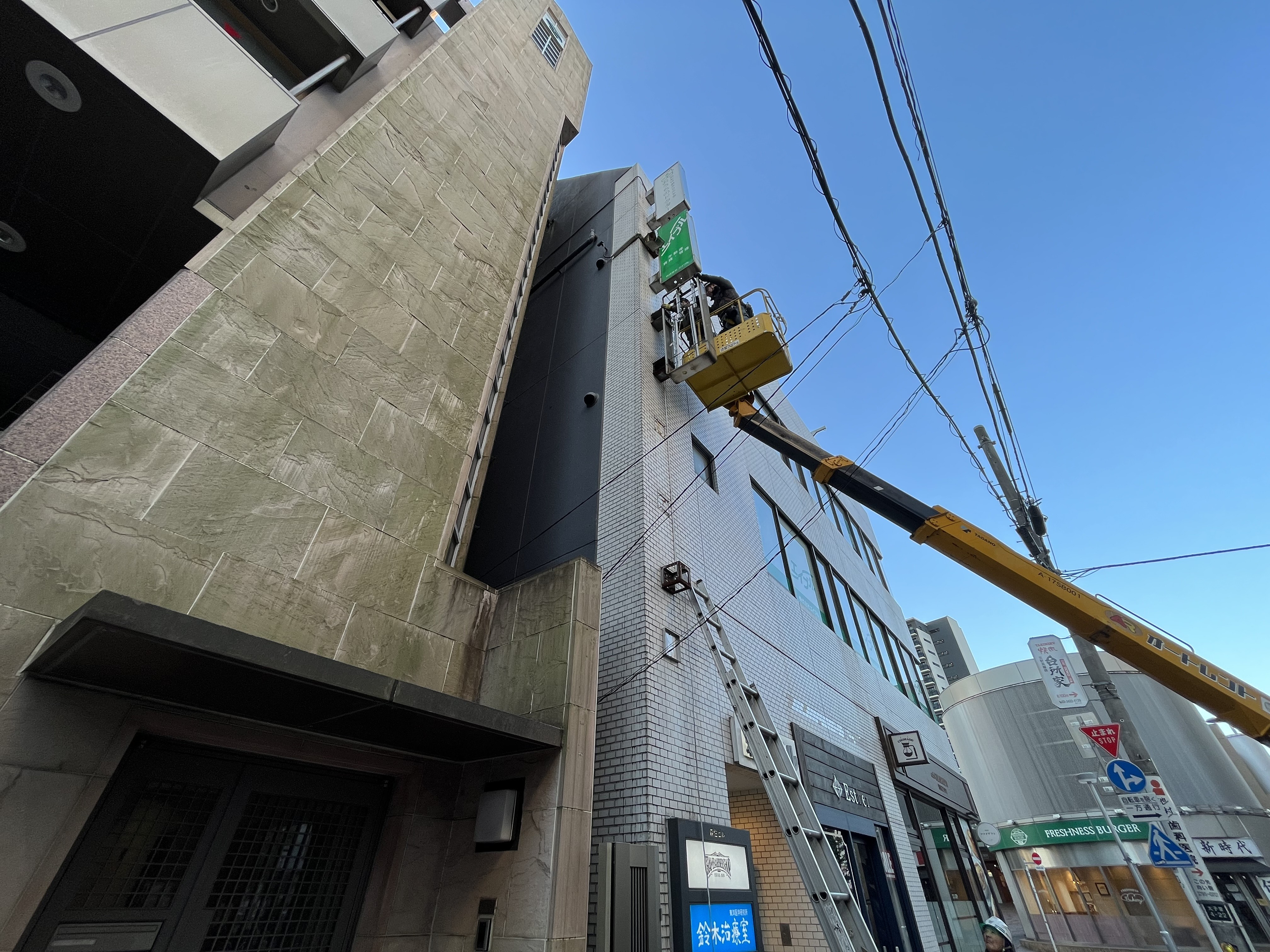 今回は袖看板撤去工事の写真をお見せしたいと思います。