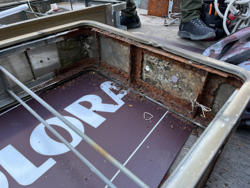 もしも、更に錆が進行していて、袖看板が通行中の方に落ちていたらと考えると恐ろしいですね。